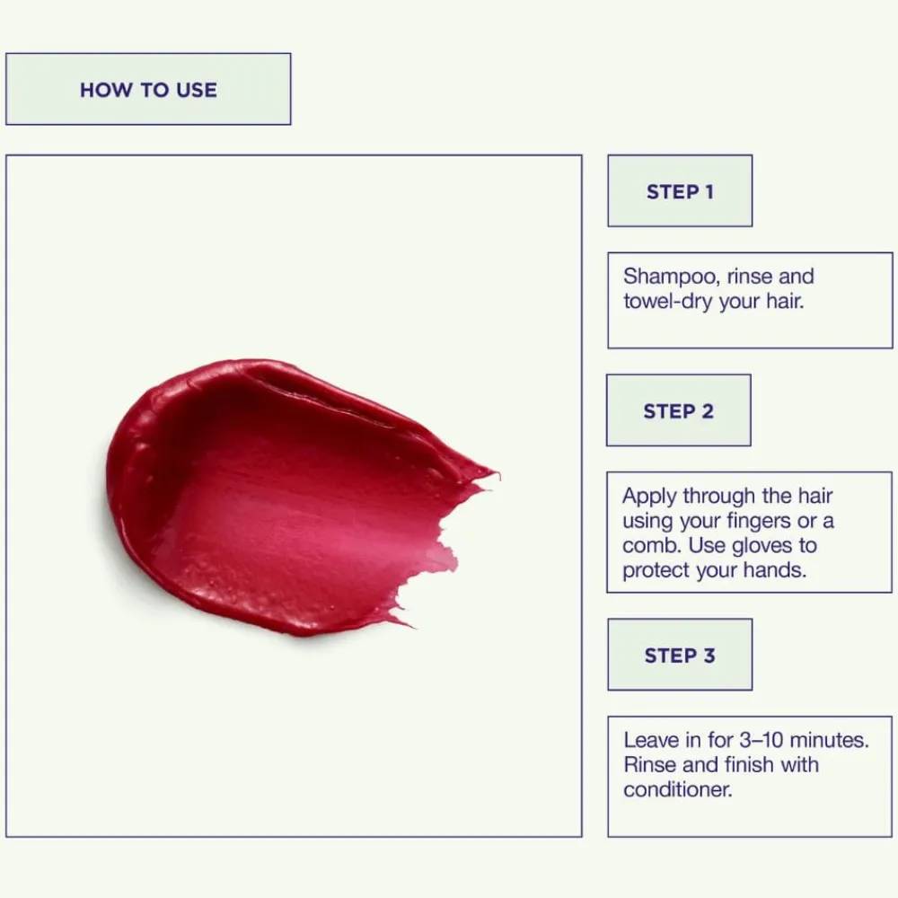 - Næringsrik hårmaske med ikke-permanente fargepigmenter.