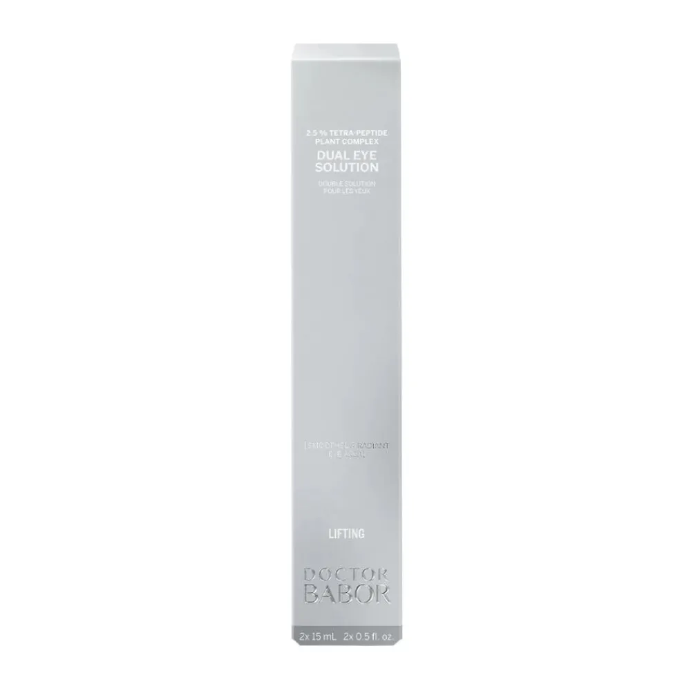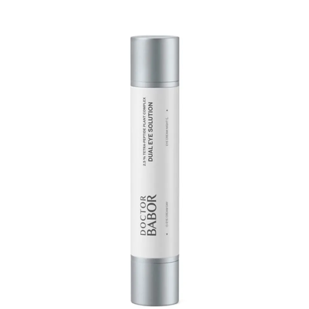 Doctor Babor Dual Eye Solution er en bestselgende og målrettet duo for både det øvre og nedre øyeområdet. Dagkremen er lett i konsistensen, og fukter, jevner, forfrisker og revitaliserer, samtidig med å redusere synligheten av mørke ringer og poser. Den inneholder aktive ingredienser som hyaluronsyre og koffein, samt rotekstrakt fra gulsøteurt. Nattkremen er rikere i konsistensen, og er nærende og beroligende, samt rynkeredusende. Inneholder aktive ingredienser som vitamin F, tetrapeptider og oljer av høy kvalitet. Denne allsidige øyekremen passer for alle, og jobber med alle type utfordringer som kan oppstå ved øyepartiet.
