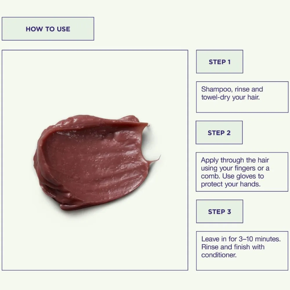- Næringsrik hårmaske med ikke-permanente fargepigmenter.
