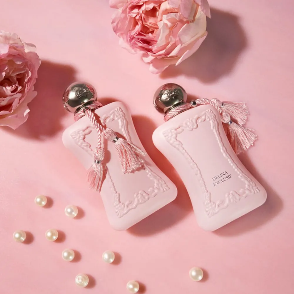Delina er en Eau de Parfum for kvinner. Den har en sensuell blomsterduft med flere fasetter. Fremtredende hint av litchi, bergamot, muskatnøtt og rabarbra. Et hjerte av petalia, vanilje, musk, tyrkiske roser og peoner. I bunn er det hint av vetiver fra Haiti, røkelse, cashmere og seder. En virkelig luksuriøs duft, som er ekstremt langvarig. Perfekt til kvinnen som forfølger sine drømmer.